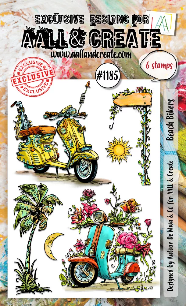 AALL and Create Szilikonbélyegző készlet - Beach Bikers. Használatához akril blokk (bélyegző alátét) vagy bélyegző pozícionáló szükséges. A6 - 15x10cm.