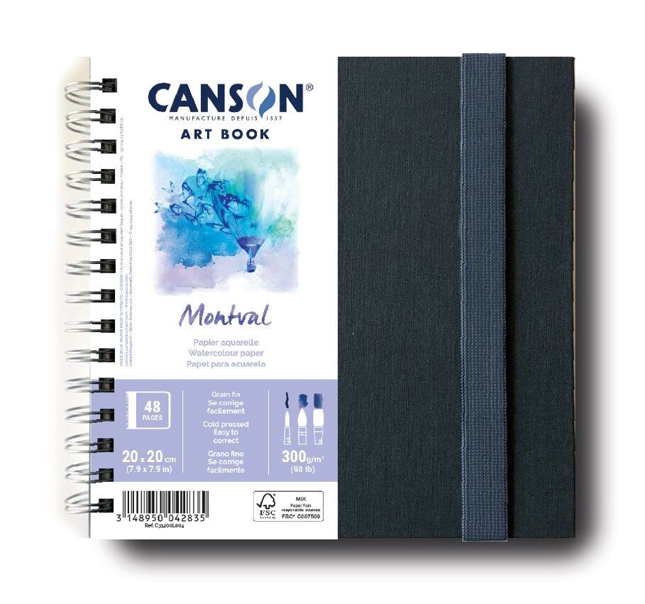 CANSON Art Book Montval könyv, spirálkötött, sötétkék szövet borítóval. Mérete: 20 x 20 cm - 300g/m2, 24 lap/48 oldal.