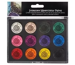 Cosmic Shimmer akvarell készlet. 12 gyönyörű árnyalatot tartalmazó akvarellfesték készlet. Csodásan csillogó és irizáló akvarell festék készletek!