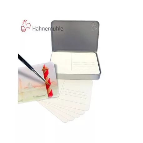 Akvarellpapír - levelezőlap - . Tartalom: A fém dobozban 30 db levelezőlap mérető akvarellpapír található. A képeslapok el vannak látva vonalazott cím hellyel. Mérete: 10,5x14,8 cm / 30 lap, 230 g/m²