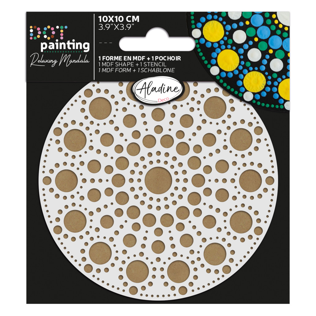Készíts látványos mandalákat egyszerűen az Aladine Pontfestő Készlettel! A készlet tartalmaz egy 10 x 10 cm-es fa alapot és egy praktikus műanyag sablont, amely segít a tökéletes minta kialakításában.