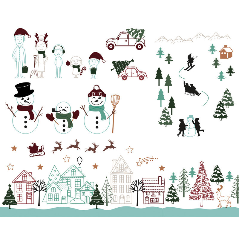 A készlet 67 db bélyegzőt tartmaz, tél / karácsony témában.
