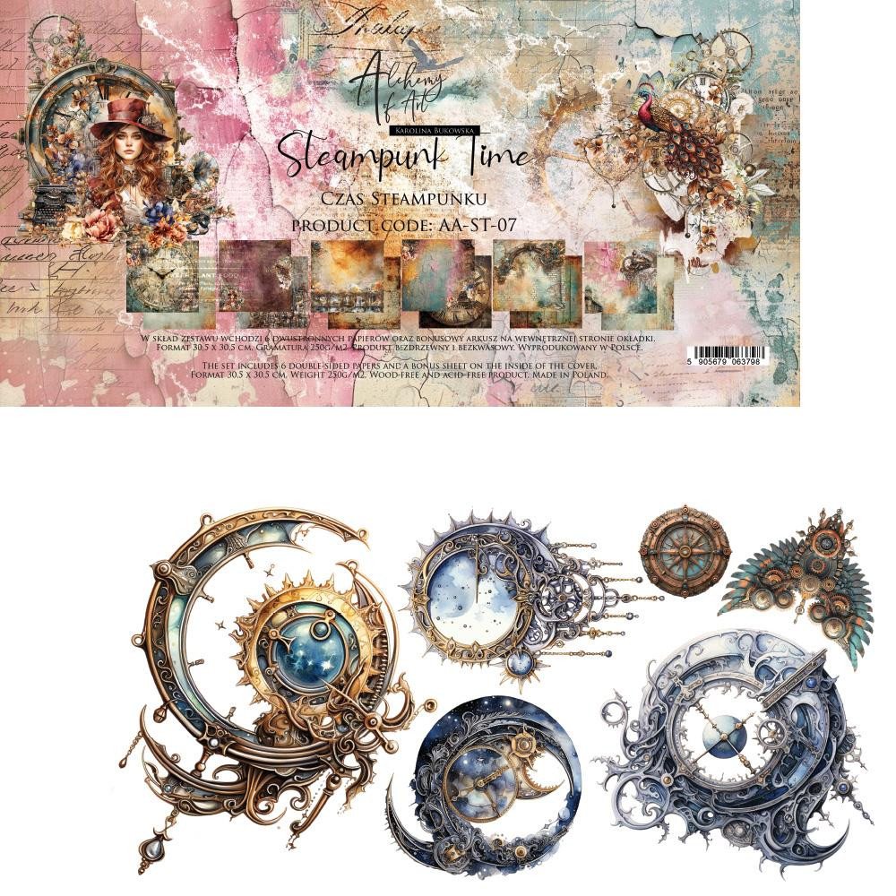 Alchemy of Art Papírkészlet 12" (30 cm) Steampunk Time Paper Collection Set (6 lap).