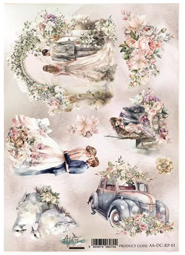 Rizspapír, átlátszó, mégis erős. A legjobb eredmény eléréséhez, decoupage ragasztó használata ajánlott. Mérete: A4 - 21x29,7cm