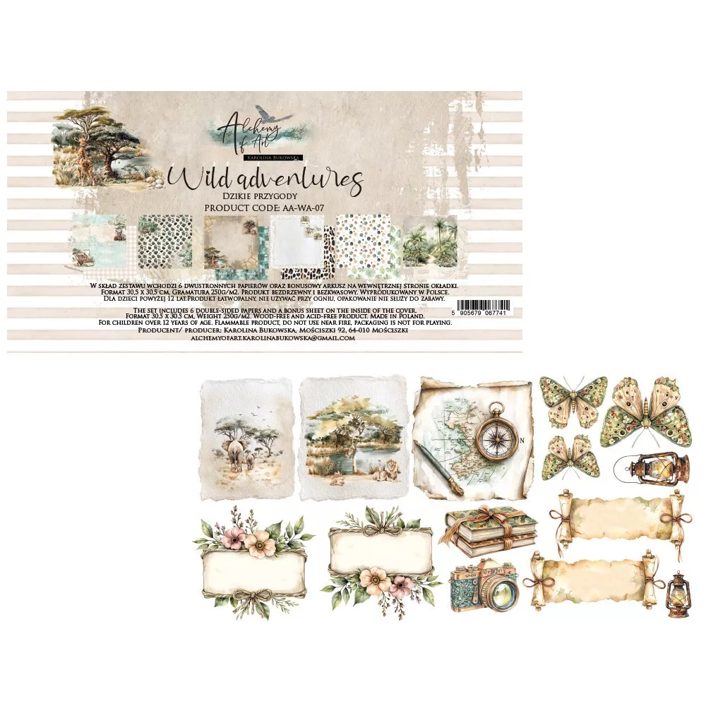 Alchemy of Art Scrapbook papírkészlet 12" (30 cm) Wild Adventures Paper Collection Set (12 lap)