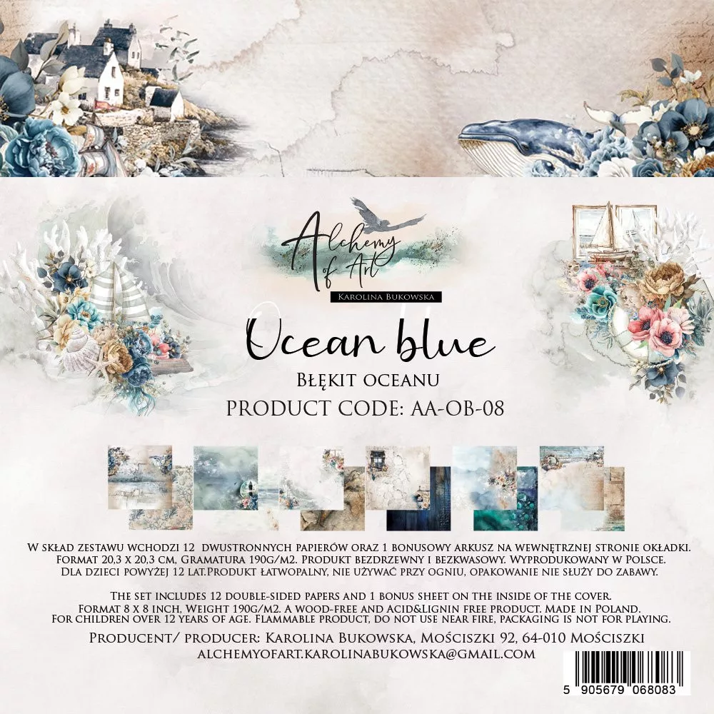 Alchemy of Art Scrapbook papírkészlet 8" (20 cm) Ocean Blue Paper Collection Set (24 lap).
