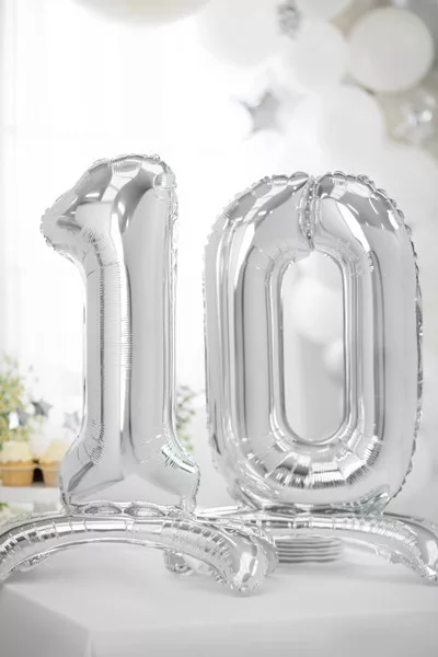 Stílusos, metálfényű ezüst fólia lufi szám formában, amely önmagában megáll a földön – nem kell hozzá sem hélium, sem lufitalp! Tökéletes választás születésnapokra, évfordulókra, ballagásra, újévi bulikra vagy akár fotóháttér dekorációhoz is. Különösen praktikus, mert levegővel tölthető, így otthon is könnyen felfújható.