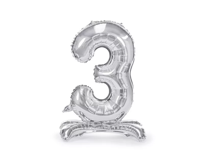 Álló szám fólia lufi ''3'' 70cm ezüst