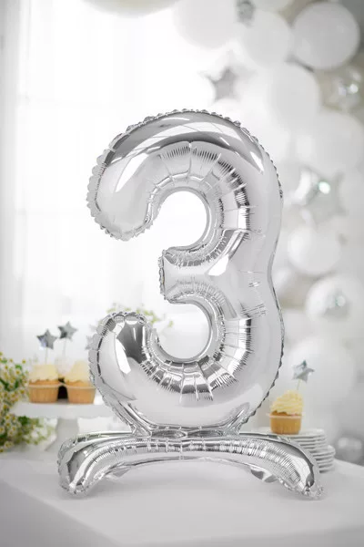Stílusos, metálfényű ezüst fólia lufi szám formában, amely önmagában megáll a földön – nem kell hozzá sem hélium, sem lufitalp! Tökéletes választás születésnapokra, évfordulókra, ballagásra, újévi bulikra vagy akár fotóháttér dekorációhoz is. Különösen praktikus, mert levegővel tölthető, így otthon is könnyen felfújható.