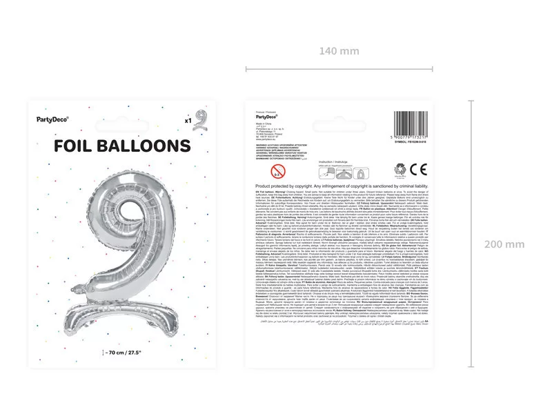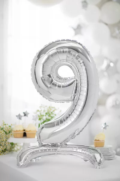 Stílusos, metálfényű ezüst fólia lufi szám formában, amely önmagában megáll a földön – nem kell hozzá sem hélium, sem lufitalp! Tökéletes választás születésnapokra, évfordulókra, ballagásra, újévi bulikra vagy akár fotóháttér dekorációhoz is. Különösen praktikus, mert levegővel tölthető, így otthon is könnyen felfújható.
