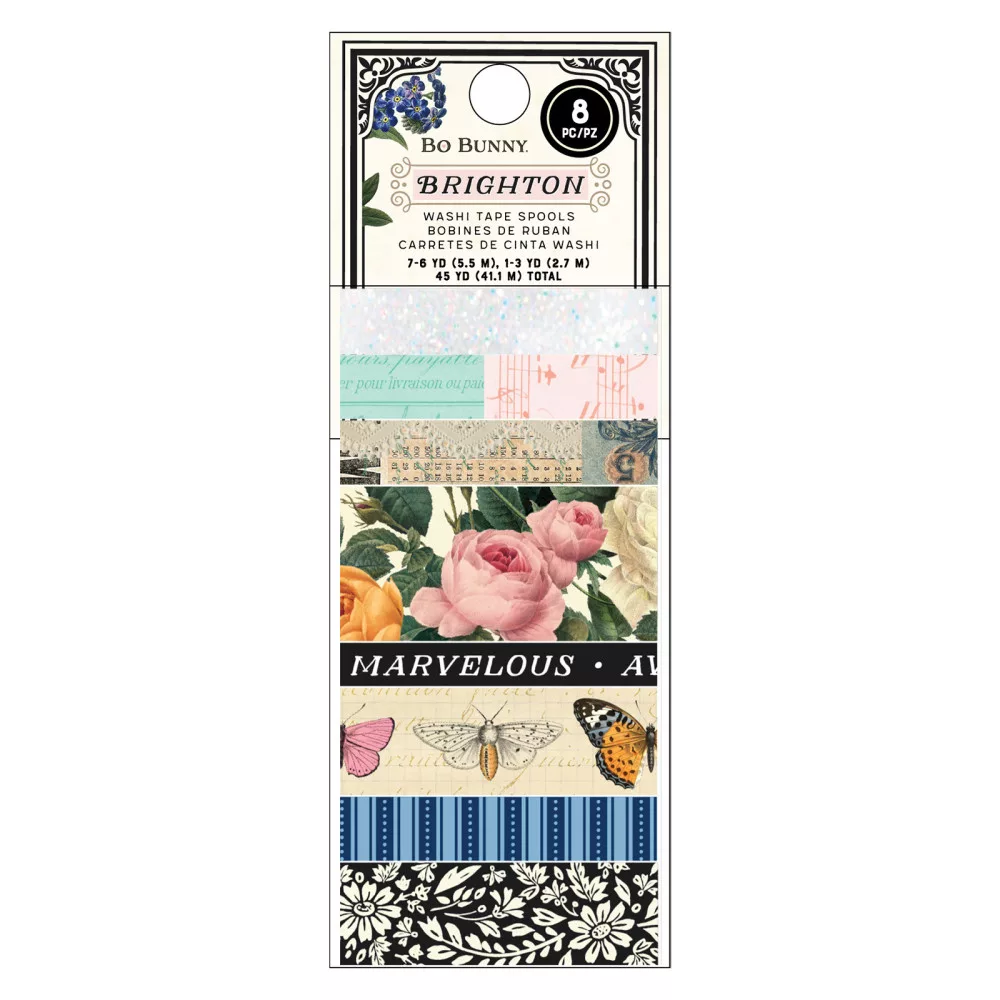 Frissítsd fel kreatív projektjeidet a BoBunny Brighton kollekció elegáns és romantikus hangulatú washi szalagjaival! Ez a 8 darabos szett tökéletes választás scrapbookhoz, bullet journalhoz, képeslapokhoz vagy bármilyen papíralapú dekorációhoz.