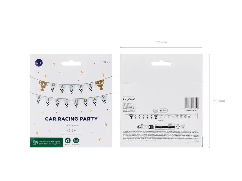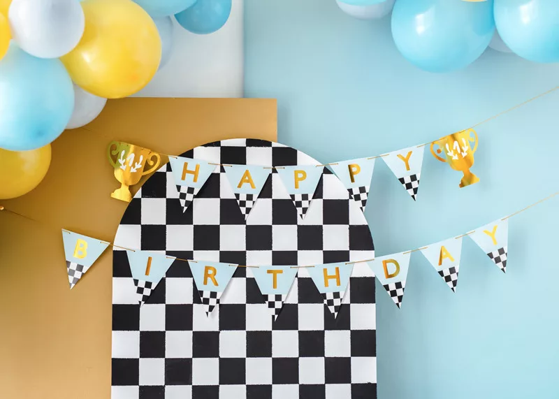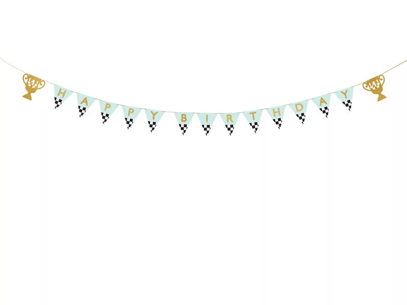 Banner "Happy Birthday" Autóversenyzős party 2.5 m