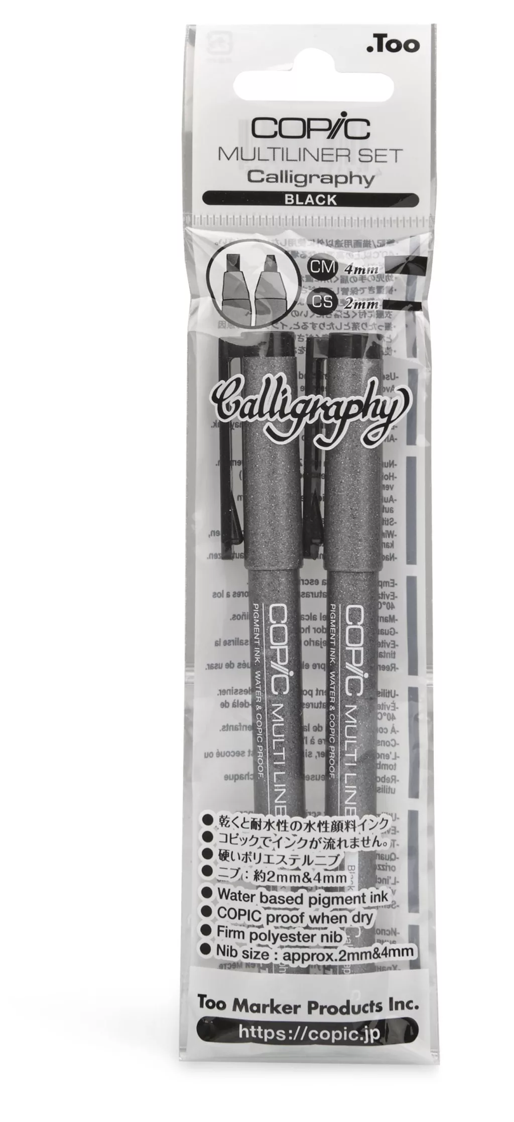 A Copic Multiliner Calligraphy készlet két kiváló minőségű, pigmentalapú tustollat tartalmaz, amelyeket kifejezetten kalligráfiához és precíz vonalvezetéshez terveztek.