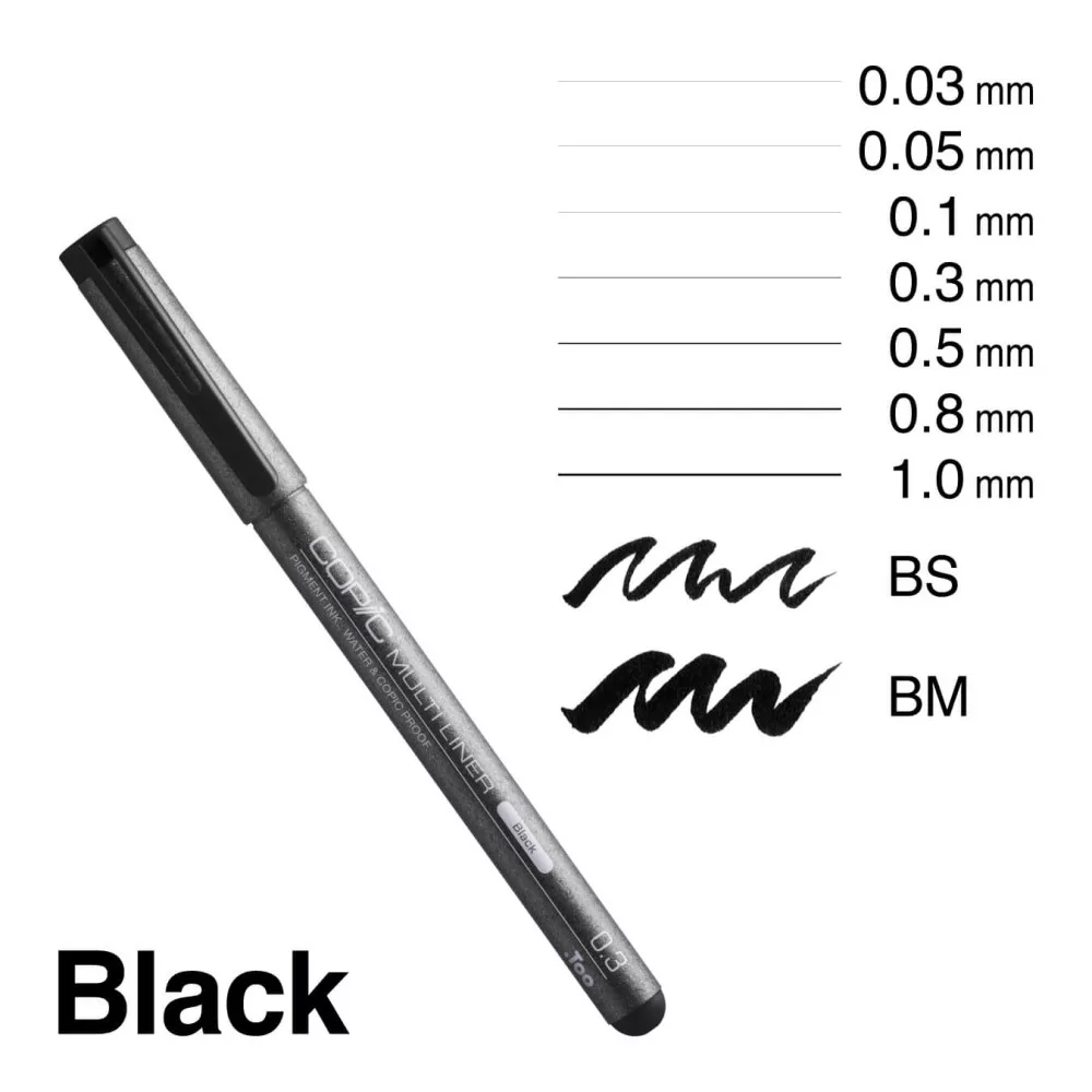 COPIC Multiliner Tűfilc - Fekete - Választható méret (1 db)
