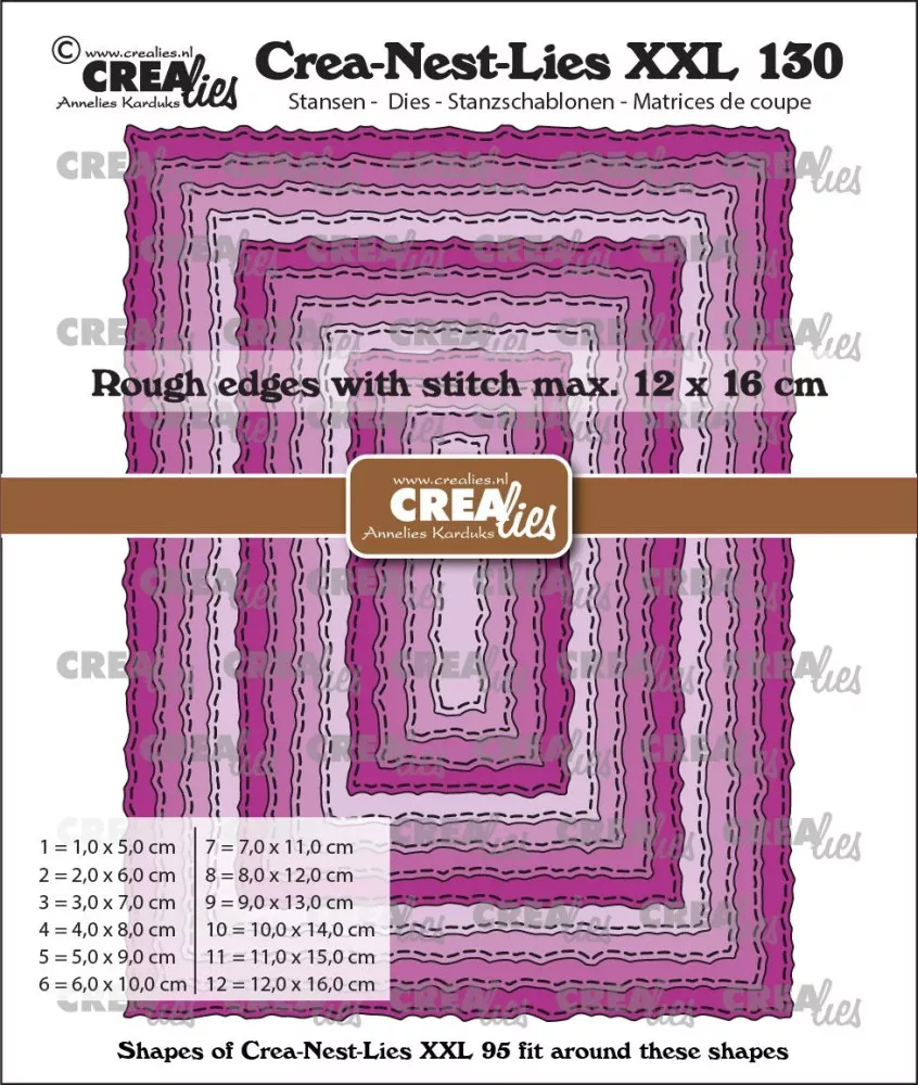 CREAlies vágósablon - Téglalapok durva élekkel és öltésvonalakkal - XXL130 - Crea-Nest-Lies (12 db)