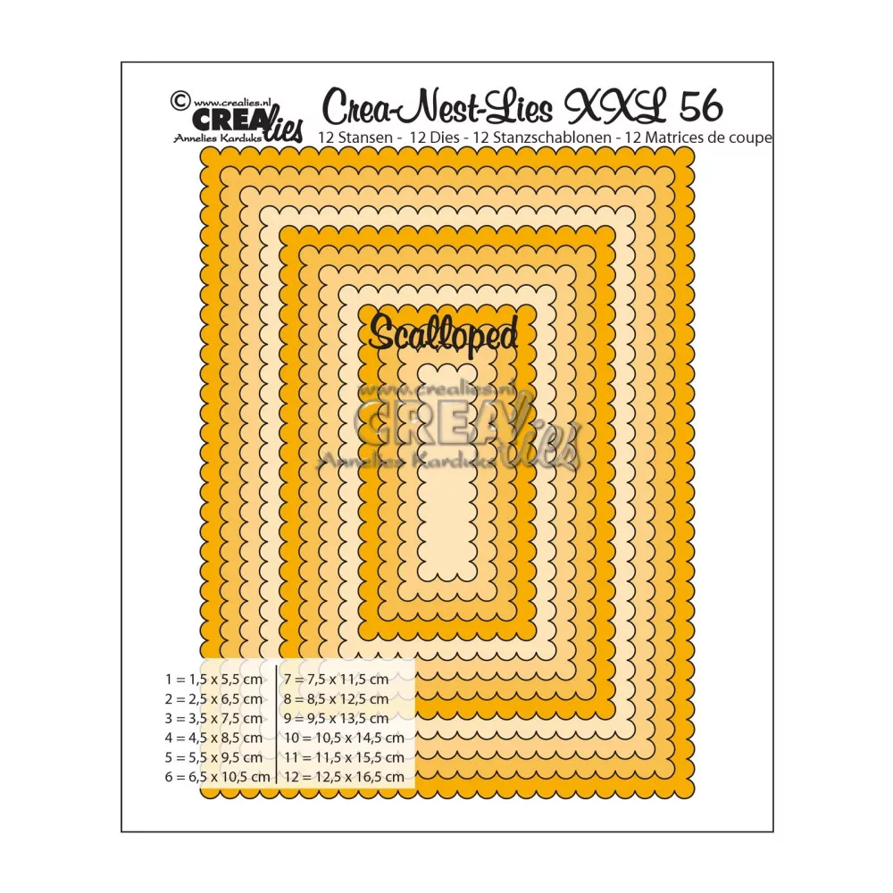 CREAlies vágósablon - Téglalapok kagyló mintával - XXL56 - Crea-Nest-Lies (12 db)