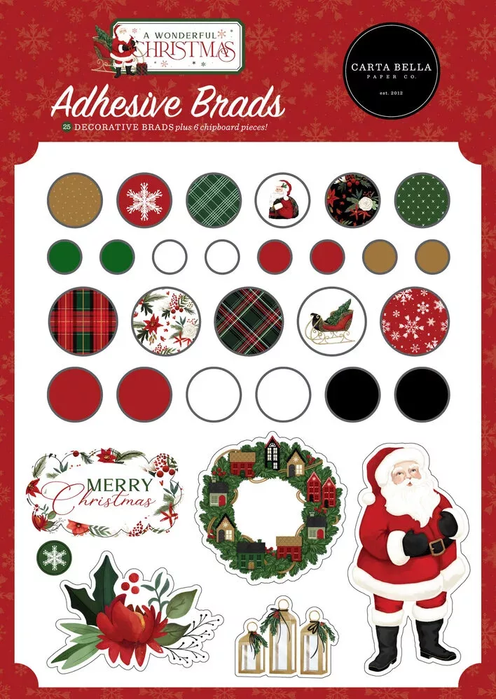 Carta Bella Díszítőelem - Adhesive Brads - A Wonderful Christmas (1 csomag)