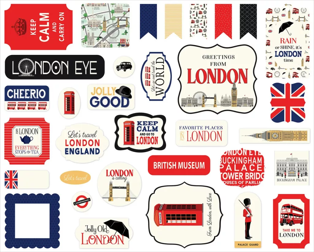 Scrapbook formára vágott díszítőelem készlet. A London kollekció tökéletes kiegészítője.
