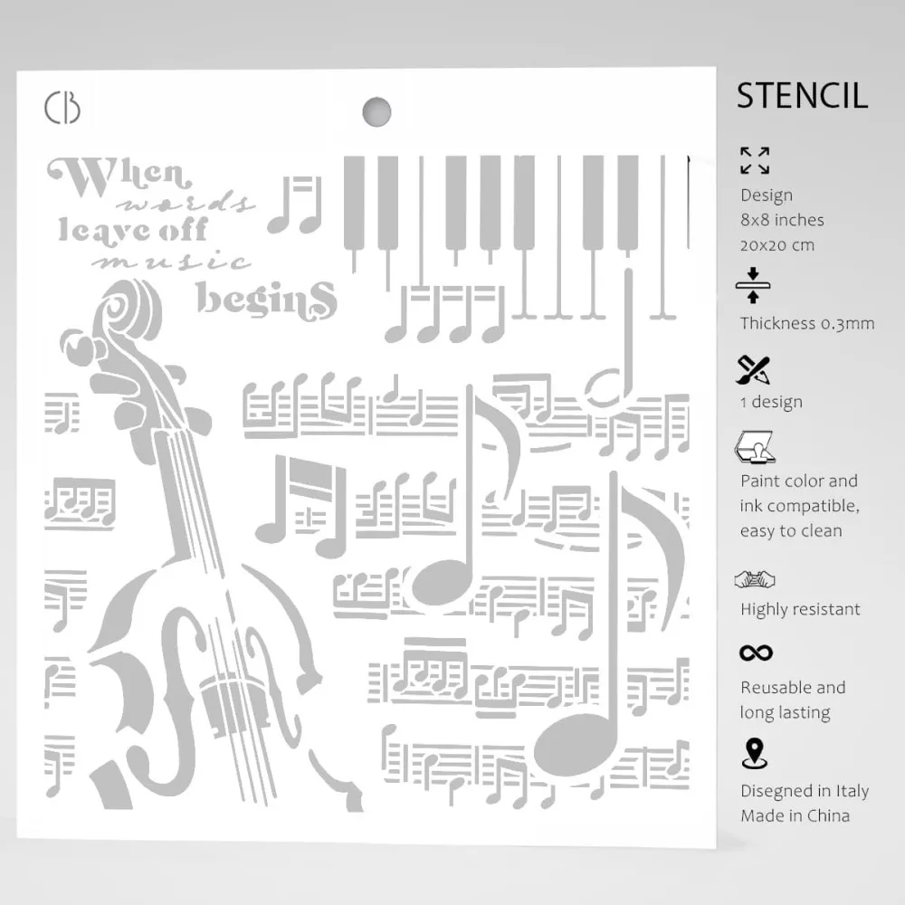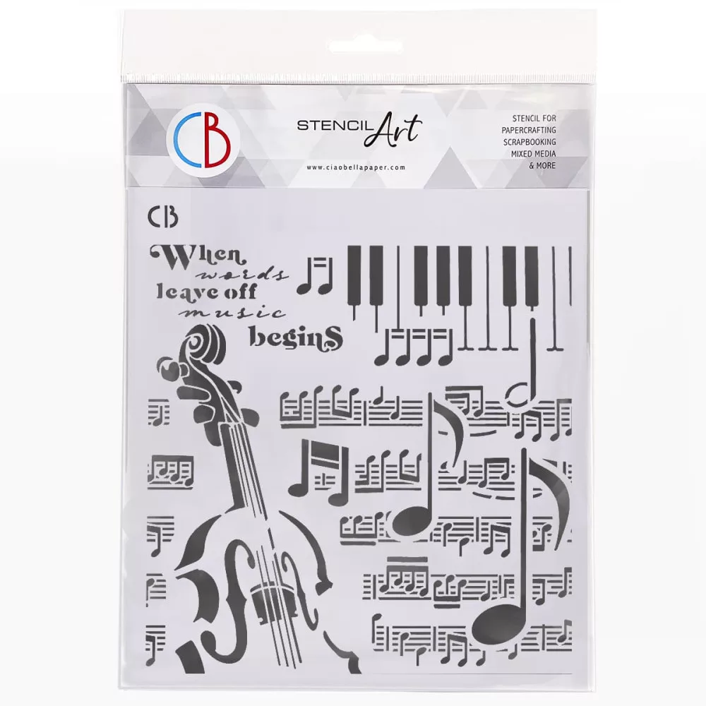 Ciao Bella Stencil 8" (20 cm) - Music Begins  - Texture Stencil (1 db)