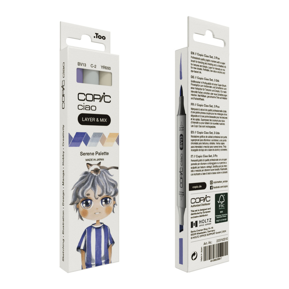 Copic Alkoholos marker készlet Serene Palette Copic Ciao "LAYER & MIX" Manga Set (3 db)