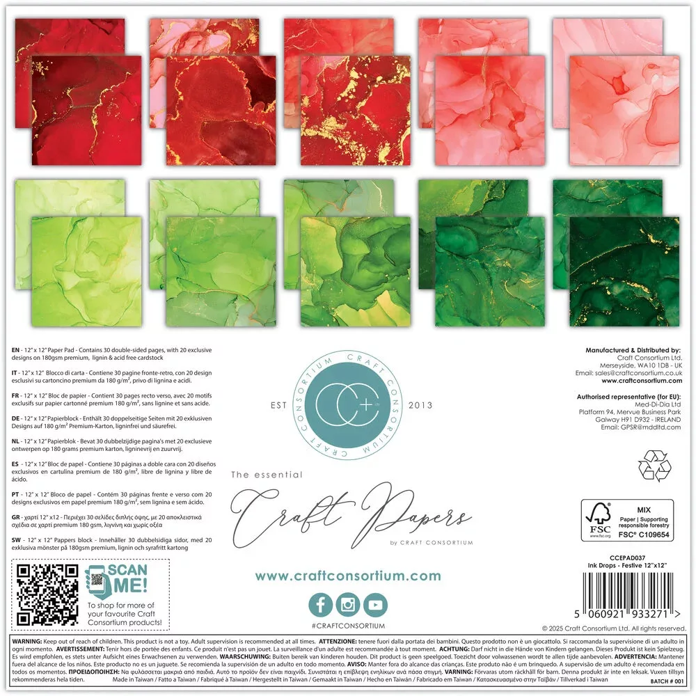 Craft Consortium Ink Drops Festive Scrapbook papírkészlet Essential Craft Papers 12" (30 cm) 30 lap