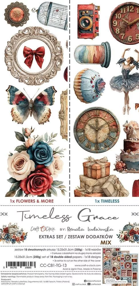 Craft O'Clock Kivágóív Timeless Grace Mix Extras to Cut Set (18 ív)