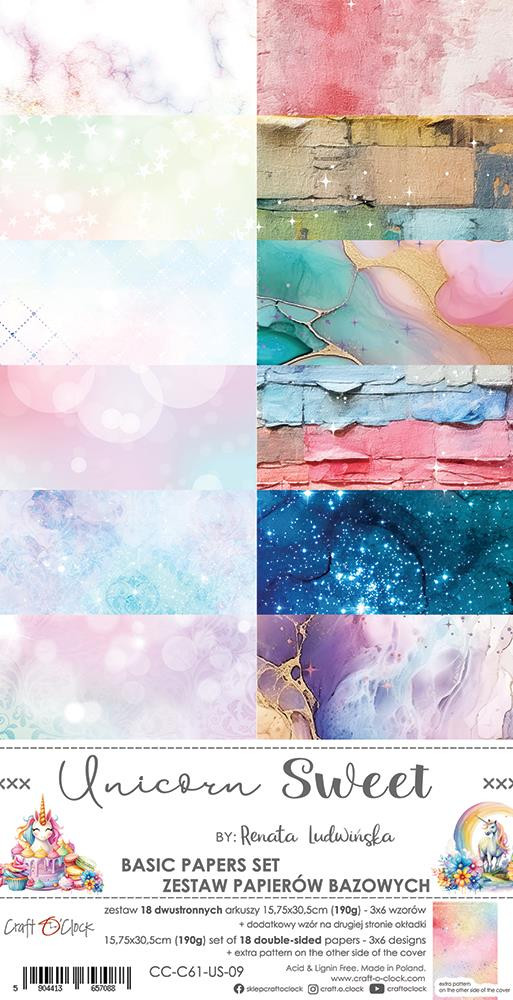 Craft O'Clock Papírkészlet 6"x15" (15cm x 30 cm) - Unicorn Sweet - Basic Paper Set (1 csomag).