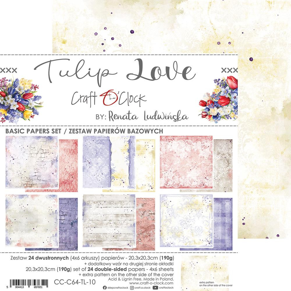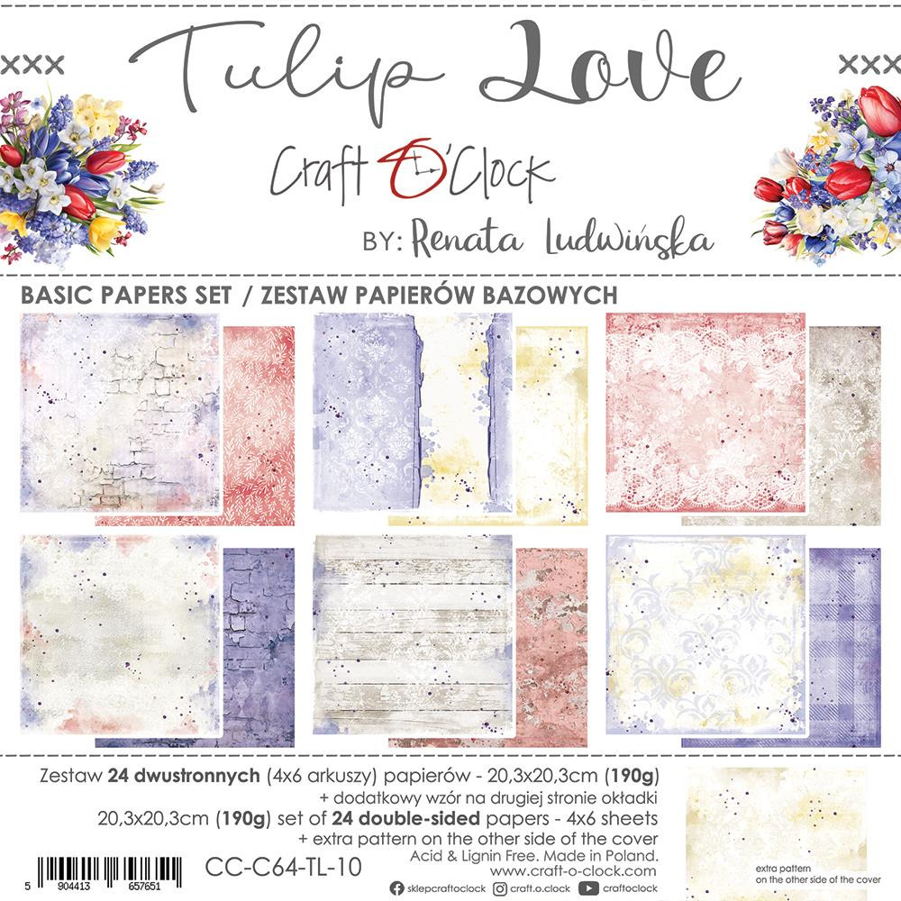 Craft O'Clock Scrapbook papírkészlet 8" (20 cm) - Tulip Love - Basic Paper Set (24 ív)