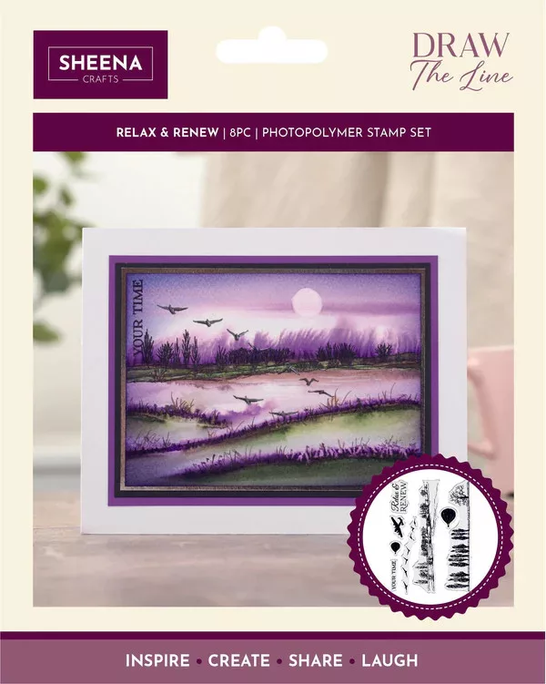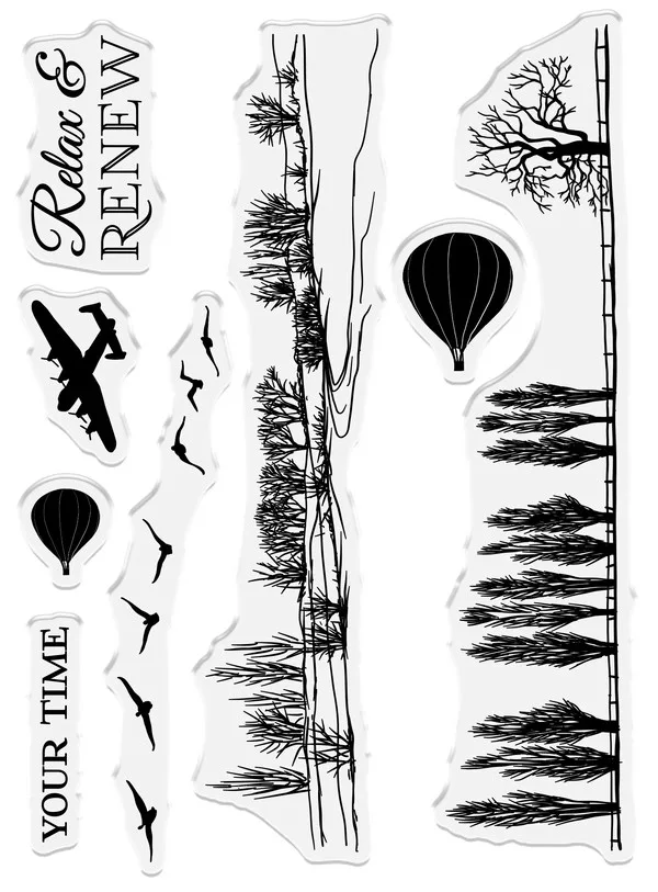 Hozz békét és nyugalmat kézzel készített kártyáidra és otthoni dekorációidra a Relax & Renew bélyegző készlettel a Sheena Douglass Draw the Line kollekciójából. Ez a készlet nyolc részletesen kidolgozott bélyegzőt tartalmaz, amelyek segítségével varázslatos tájképeket hozhatsz létre, például finom fás horizontot, hőlégballonokat, repülő madarakat, egy repülőgépet és nyugtató üzeneteket.