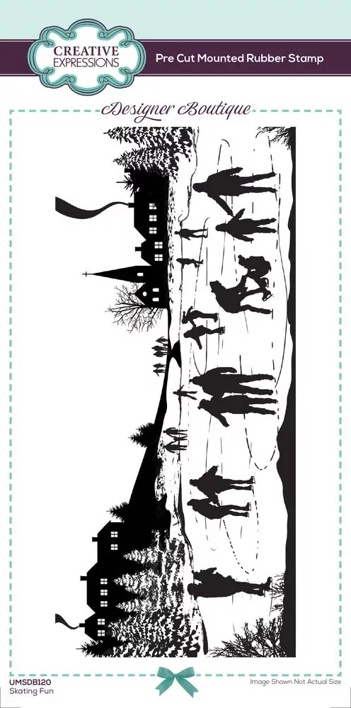 A Designer Boutique – Skating Fun gumibélyegző egy hangulatos téli korcsolyapályát ábrázol, ahol kicsik és nagyok együtt élvezik a befagyott tó varázsát. Egyetlen lenyomattal teljes jelenetet készíthetsz, így ideális karácsonyi képeslapokhoz, scrapbookhoz és téli alkotásokhoz. A bélyegző angol gyártású, cling hátlapú gumibélyegző, amely akrilblokkra tapad. Papírra, acetátra, üvegre és textilre is használható a megfelelő tintapárnával.