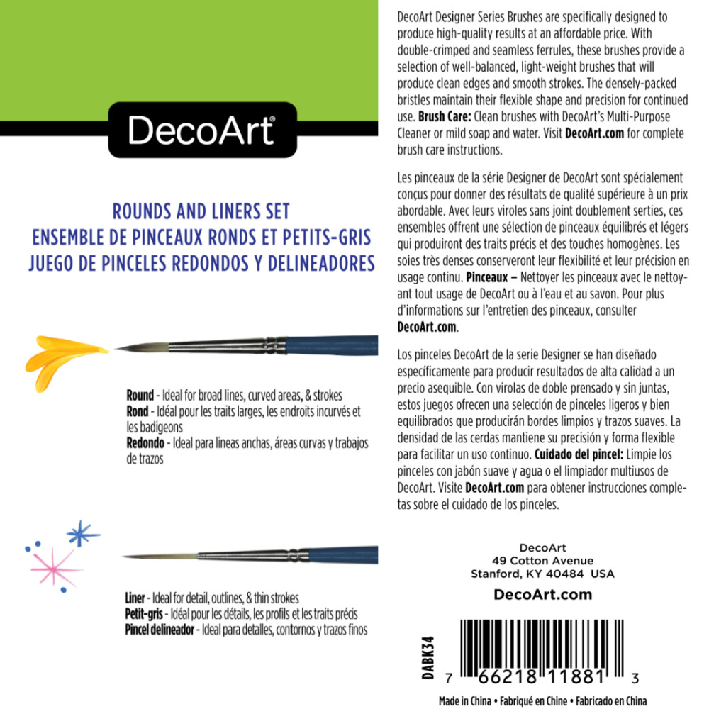 DecoArt Designer's Brush Rounds & Liners Set Ecset készlet (4 db)