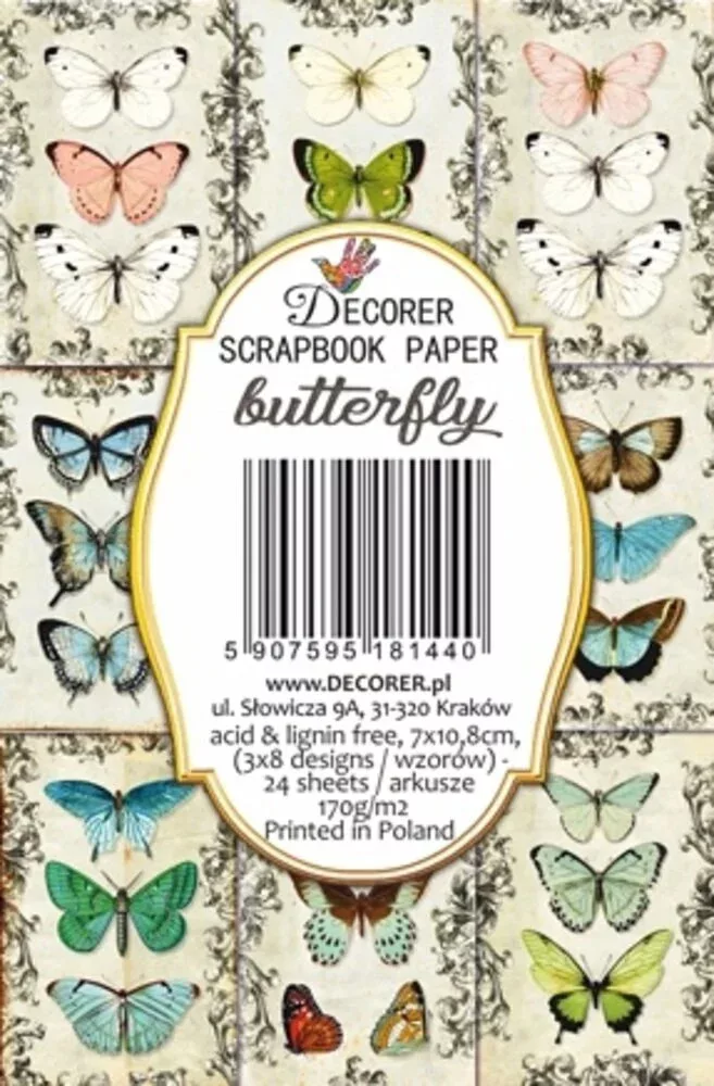 Decorer Papírkészlet 7x10.8 cm - Butterfly - - Mini Scrapbook paper (24 ív).