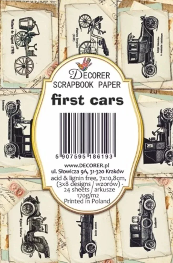 Decorer Papírkészlet 7x10.8 cm - First Cars -  - Scrapbook Paper (24 ív)