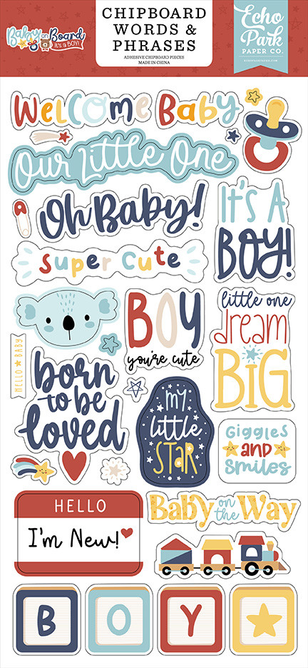 Echo Park Baby On Board - Boy Chipboard 6"X12" Chipboard Phrases (1 ív)
