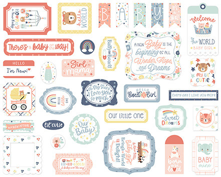 Scrapbook formára vágott díszítőelem készlet. A Baby On Board - Girl kollekció tökéletes kiegészítője.