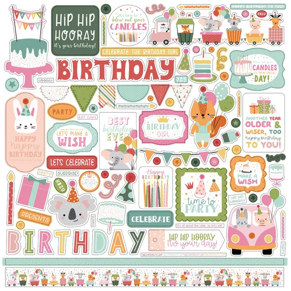 Echo Park Matrica 12" (30 cm) - Cardstock Stickers - Elements - A Birthday Wish Girl (1 ív)