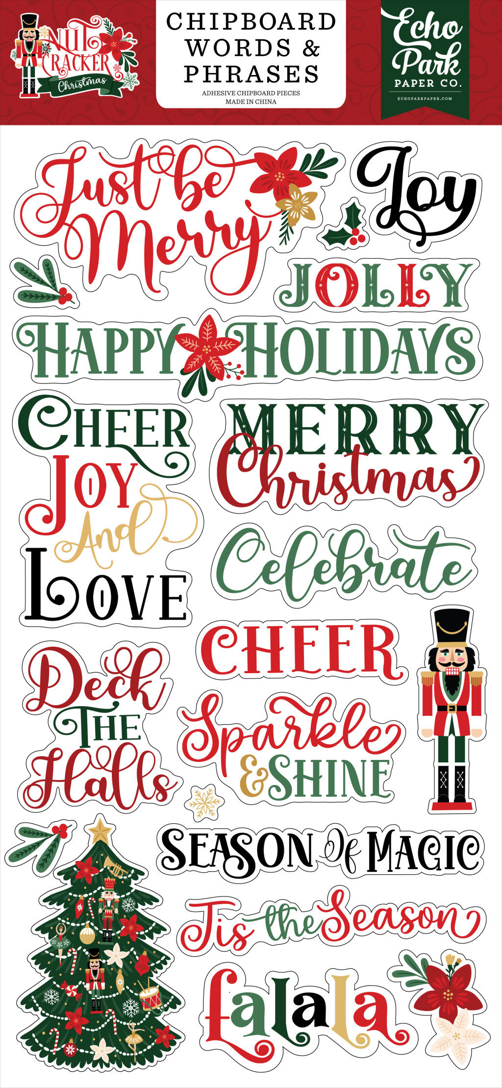Echo Park Nutcracker Christmas Chipboard 6"X12" Chipboard Phrases (1 ív).