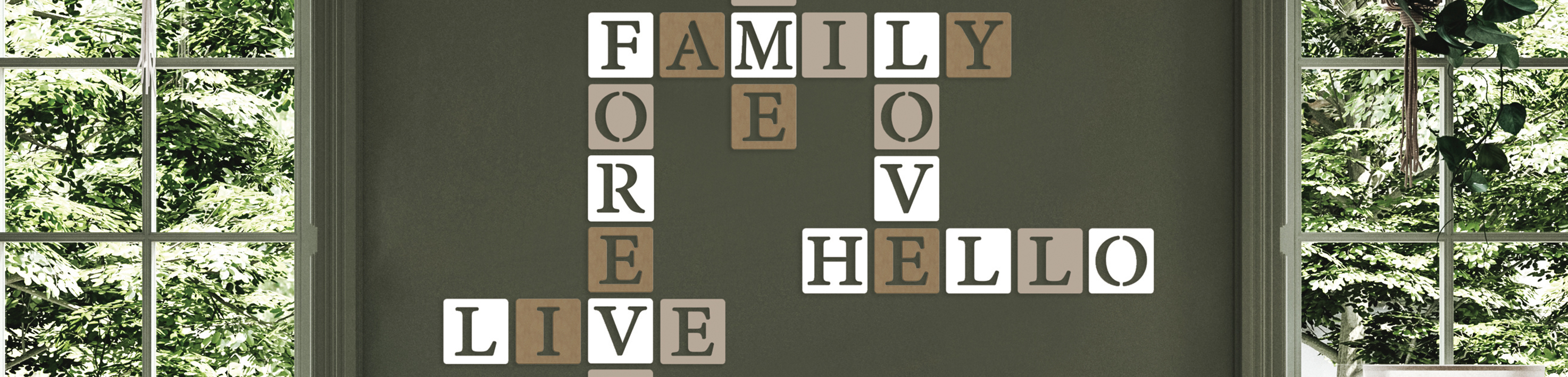 Fali dekoráció a jól ismert Scrabble játék stílusában. Különleges dekorációt keresel? Készíts el saját scrabble képedet a Te stílusodban és tedd otthonod még hangulatosabbá!