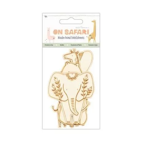 Fa díszítőelem , Papermania On Safari  / Wooden Animal Embellishments -  (4 db)