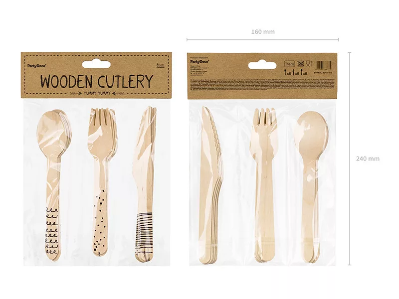 Ezek a stílusos, fekete mintás fából készült evőeszközök tökéletesek bármilyen rendezvényhez! Legyen szó születésnapról, esküvőről vagy piknikről, ez a szett feldobja az asztali terítéket.