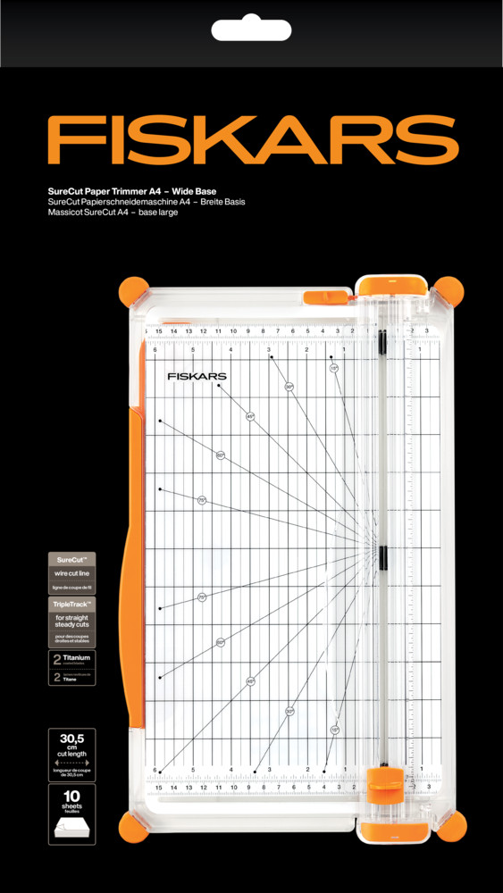 A SureCut A4 Wide Base papírvágó megbízható és praktikus társ minden kreatív alkotó és irodai felhasználó számára. A TripleTrack™ szabadalmaztatott rendszer gondoskodik arról, hogy minden vágás tökéletesen egyenes legyen, a papír ne mozduljon el, és a vágás ne legyen hullámos vagy pontatlan.