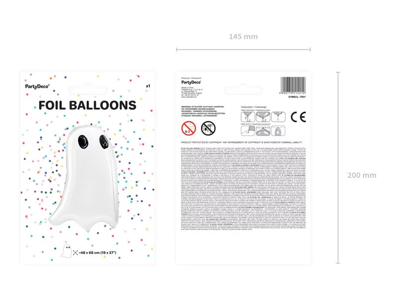 Ez a fehér színű szellem alakú fólia lufi tökéletes kiegészítője lehet bármilyen Halloween bulinak vagy ijesztő témájú eseménynek. A nagy méretű lufi (48 x 68 cm) garantáltan magára vonzza a figyelmet és hozzájárul a hátborzongató hangulathoz.