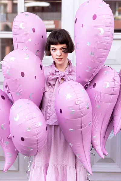 Ez a lufi nem csak ijesztő, hanem a rózsaszín és holografikus nyomatának köszönhetően különleges és látványos dekorációs elem is. Díszítsd fel bulidat ezzel az egyedi szellem alakú fólia lufival, és teremts felejthetetlen hangulatot a vendégeid számára!
