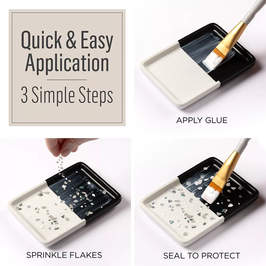 A többszínű és méretű matt színű pelyhek használata után óvd meg alkotásod egy réteg Terrazzo Sealer-el.