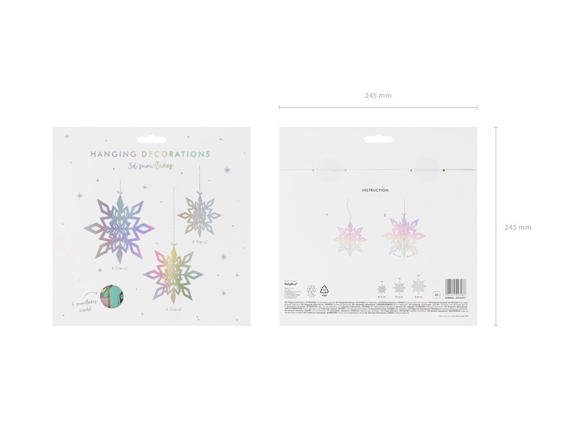 A készletben három különböző méretben (15, 20 és 25 cm) található hópehely, így dinamikus, rétegezett díszítést hozhatsz létre.