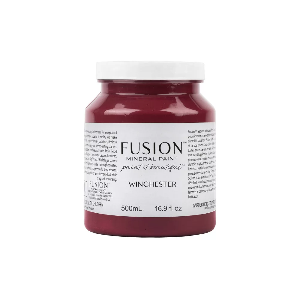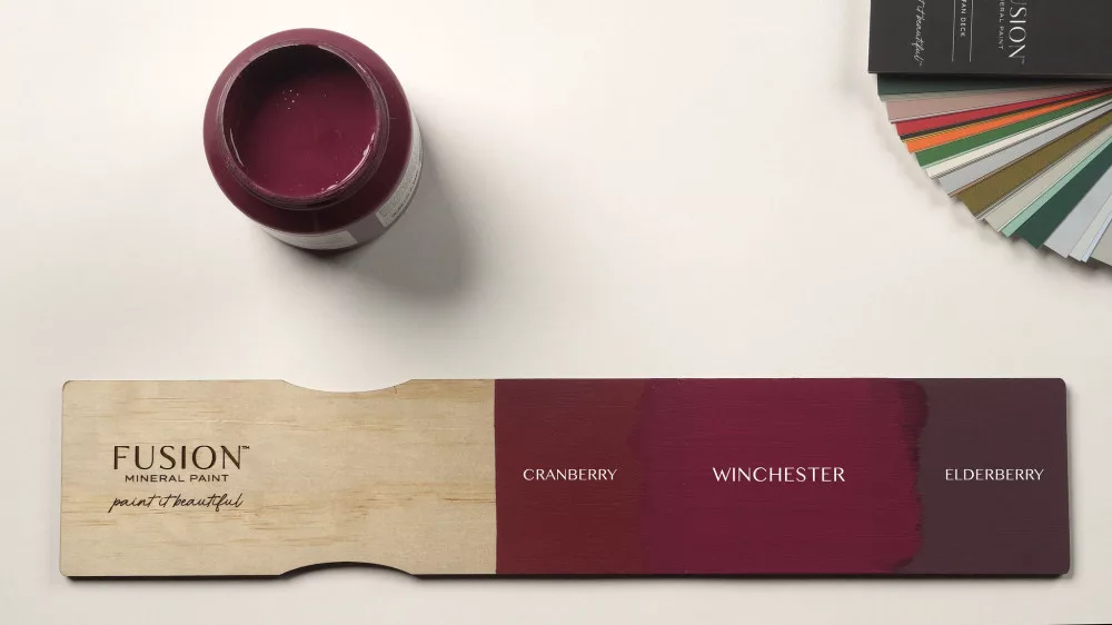 Fusion Mineral Paint WINCHESTER szín, a barokk inspirálta bordó árnyalat magával ragad az időtálló karakterével. Magabiztos és jellegzetes, ez az árnyalat rendíthetetlen hangulatot teremt.