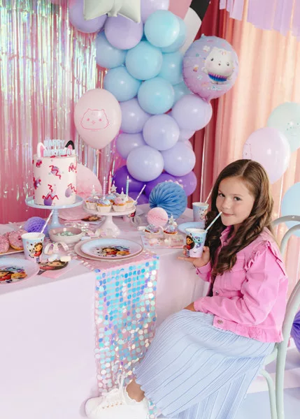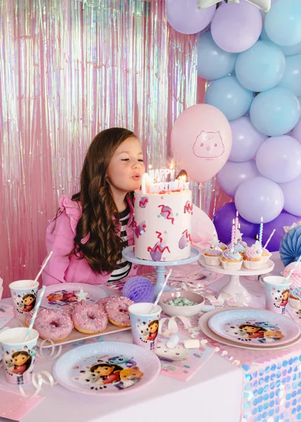 Partyzz Tipp: kombináld a poharakat a Gabi Babaháza lufikkal és tányérokkal a teljes, színben harmonizáló dekorációért!
