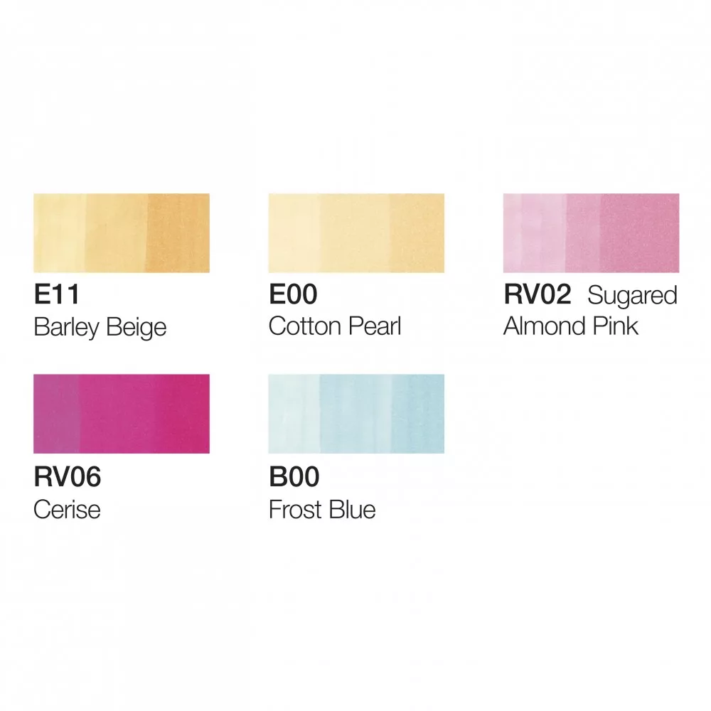 A készletben található színek: E11, E00, RV02, RV06, B00.