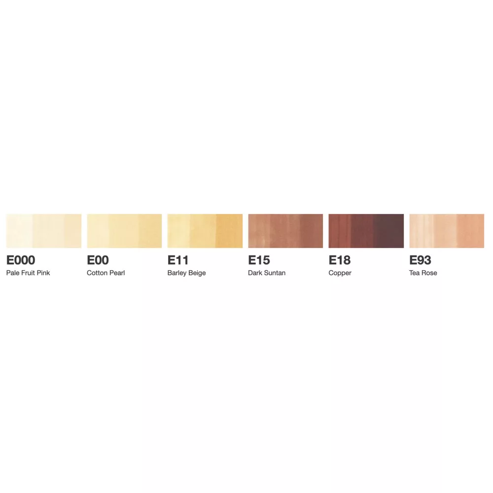 COPIC ciao grafikai filctoll készlet. Egyik oldalon vágott közép vastag, a másik oldalon ecsetheggyel - 6 db. - Bőr / Skin