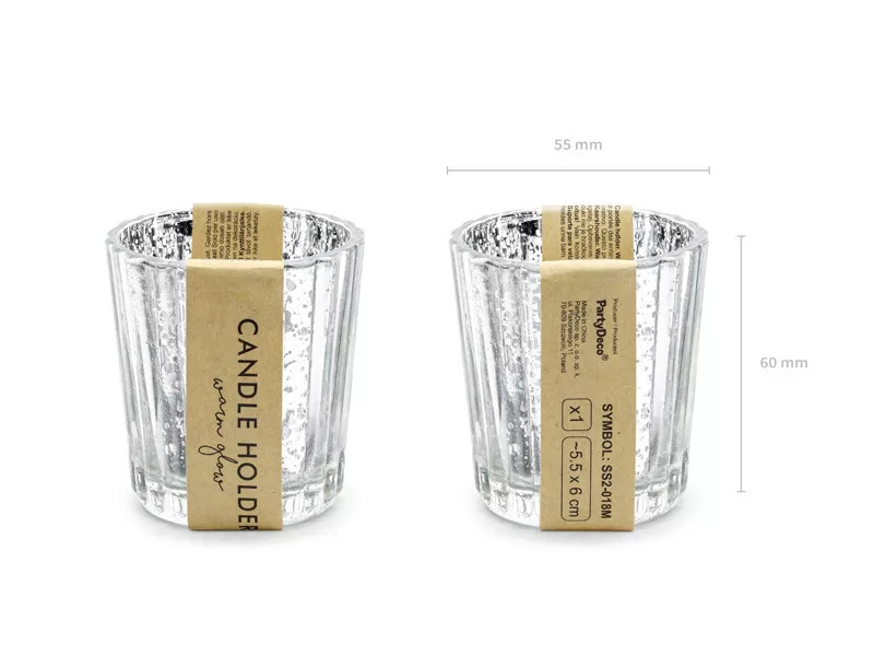 A tükör ezüst színű üveg gyertyatartó tökéletes kiegészítője bármilyen dekorációnak. Letisztult formáját és ragyogó fényét a gyertya lángja még inkább kiemeli, így ünnepi, romantikus vagy akár hétköznapi alkalmakra is remek választás.